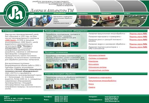 ЭСКИЗ САЙТА "ЛАЗЕРЫ И АППАРАТУРА ТМ"